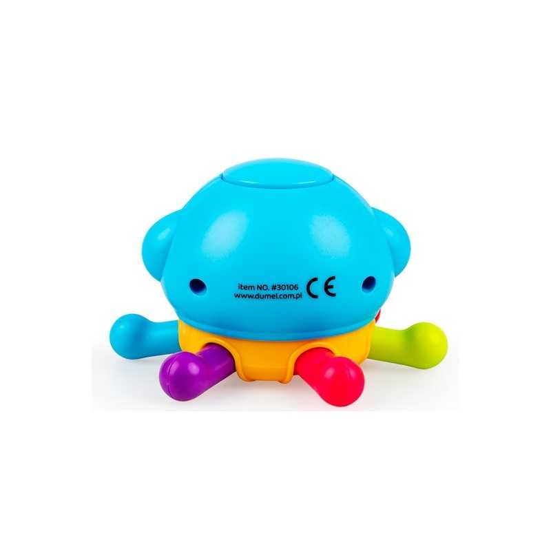 Ośmiornica Dumel to sensoryczna zabawka, która dostarcza maluchowi radości poprzez wesołe dźwięki. Skorupa ośmiornicy skrywa ukrytą piszczałkę, która wydaje zabawne dźwięki, a dodatkowo, przekręcanie jej wokół własnej osi towarzyszy delikatnemu terkotu. Zabawka stymuluje zmysł słuchu dziecka, wprowadzając go w świat dźwięków i interakcji.