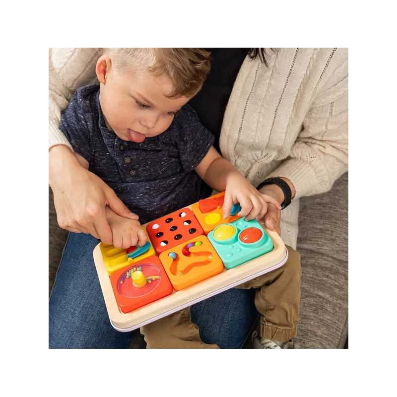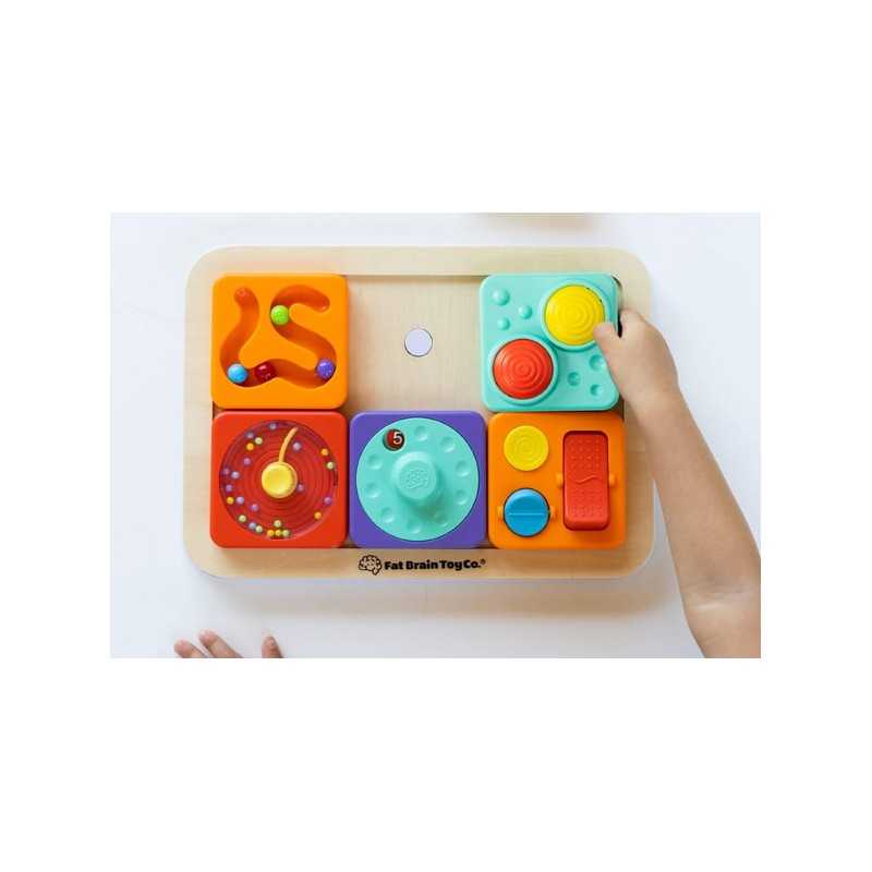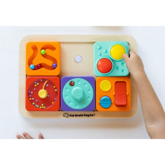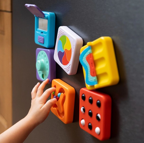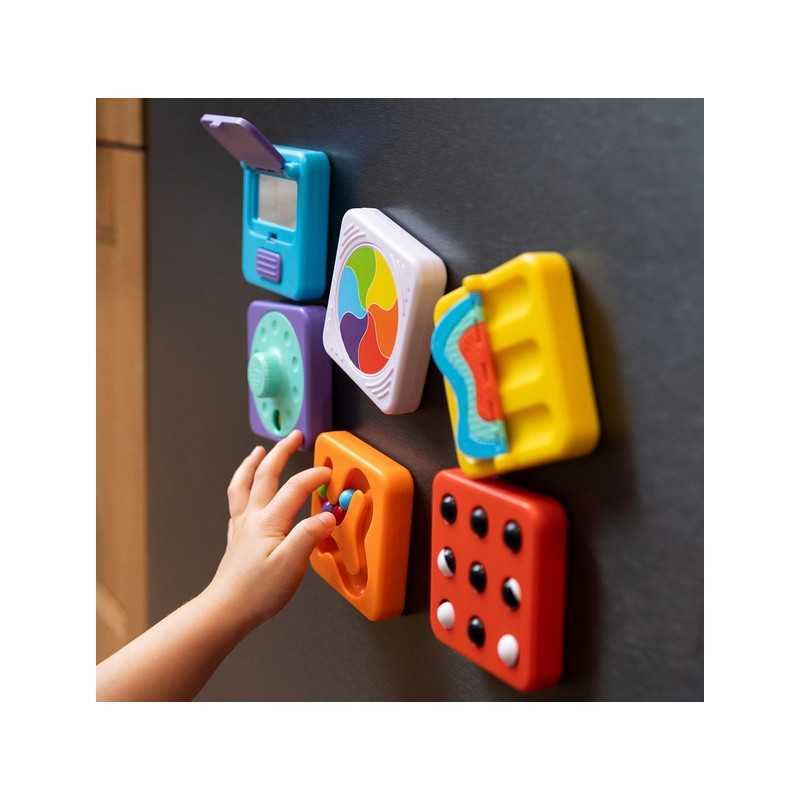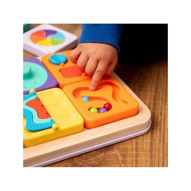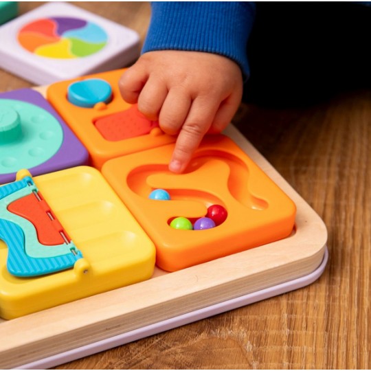 Sensoryczny kwadrat aktywności z labiryntem dla kulek. Cztery kuleczki, dziecko może przeprowadzić paluszkiem po labiryncie lub tak poruszać kwadratem żeby kuleczki same się przemieszczały. Magnetyczny Kwadrat Labirynt dla Kulek wspiera małą motorykę, koordynacji ręka-oko i uwagę. Sensoryczny kwadrat jest idealny dla malucha zaczynającego przygodę z manipulacją i relacjami przyczynowo-skutkowymi. Kwadrat jest pojedyńczą zabawką lub wymiennym elementem do Tablicy PlayTab lub PlayTab Go z Zawieszką.PlayTab to modułowa zabawka sensoryczna, która pozwala zbudować wyjątkowe doświadczenie pełne zabawy i wyzwań dla małej motoryki, odkrywania zależności przyczynowo-skutkowych.Magnetyczny kwadrat można przyczepić do magnetycznej drewnianej Tablicy PlayTab w układzie wybranym przez dziecko. Kwadraty PlayTab łatwo mocują się do drewnianego tabletu dzięki magnesom. Pojedyńczy kwadrat można zabrać na spacer lub wpiąć w ramę PlayTab Go i zabrać w podróż albo przyczepić magnetyczny kwadrat do lodówki.