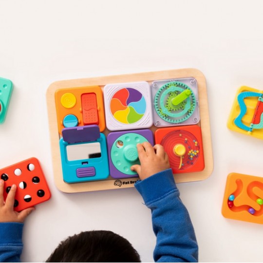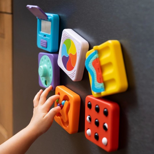 Sensoryczny kwadrat aktywności z tarczą obrazkową, którą gdy dziecko obraca słychać kliknięcia. Kwadrat PlayTab Tarcza Obrazkowa umożliwia dziecku obracanie tarczy i zmianę obrazka w okienku. Zabawa ta wspiera rozwój koordynacji ręka-oko, małej motoryki i rozumienia sekwencji. Sensoryczny kwadrat jest idealny dla malucha zaczynającego przygodę z manipulacją i relacjami przyczynowo-skutkowymi. Kwadrat jest pojedyńczą zabawką lub wymiennym elementem do Tablicy PlayTab lub PlayTab Go z Zawieszką. PlayTab to modułowa zabawka sensoryczna, która pozwala zbudować wyjątkowe doświadczenie pełne zabawy i wyzwań dla małej motoryki, odkrywania zależności przyczynowo-skutkowych.Magnetyczny kwadrat można przyczepić do magnetycznej drewnianej Tablicy PlayTab w układzie wybranym przez dziecko. Kwadraty PlayTab łatwo mocują się do drewnianego tabletu dzięki magnesom. Pojedyńczy kwadrat można zabrać na spacer lub wpiąć w ramę PlayTab Go i zabrać w podróż albo przyczepić magnetyczny kwadrat do lodówki.