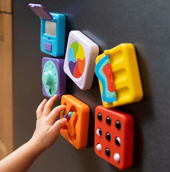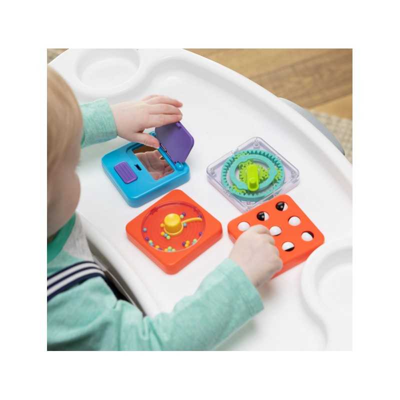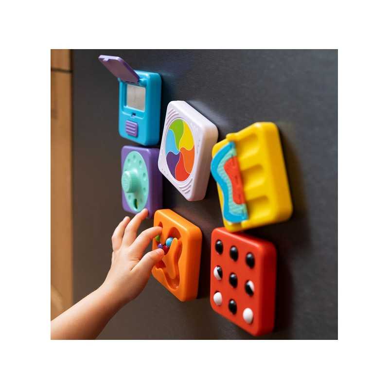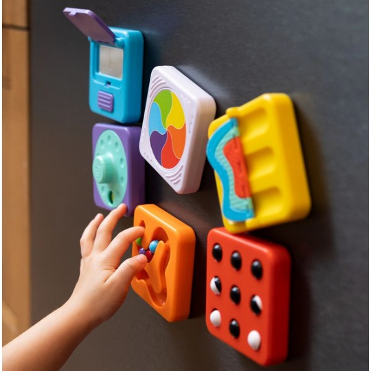 Sensoryczny kwadrat aktywności z dziewięcioma ruchomymi biało-czarnymi kuleczkami. Kuleczki, można obracać tak aby zmieniały się ich kolory to ćwiczy koncentrację i koordynację ręka-oko, rozwija zdolności motoryki małej dzięki manipulacji i kontrolowanemu ruchowi. Kwadrat jest pojedyńczą zabawką lub wymiennym elementem do Tablicy PlayTab, lub PlayTab Go z Zawieszką .PlayTab to modułowa zabawka sensoryczna, która pozwala zbudować wyjątkowe doświadczenie pełne zabawy i wyzwań dla małej motoryki, odkrywania zależności przyczynowo-skutkowych. Magnetyczny kwadrat można przyczepić do magnetycznej drewnianej Tablicy PlayTab w układzie wybranym przez dziecko. Kwadraty PlayTab łatwo mocują się do drewnianego tabletu dzięki magnesom. Pojedyńczy kwadrat można zabrać na spacer lub wpiąć w ramę PlayTab Go i zabrać w podróż albo przyczepić magnetyczny kwadrat do lodówki.
