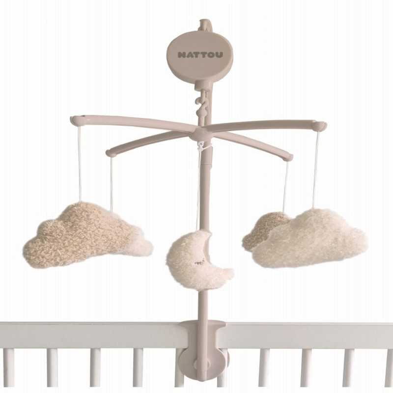 Pozwól swojemu maluszkowi cieszyć się kojącymi dźwiękami pozytywki, podczas gdy księżyc i chmurki delikatnie się obracają. Dzięki uroczym figurkom karuzela jest nie tylko piękną ozdobą pokoju, ale także wspiera rozwój słuchowy dziecka dzięki wbudowanej pozytywce, która odtwarza łagodną melodię „Le-La-Lu”. Karuzelę można łatwo i bezpiecznie przymocować do łóżeczka, kojca lub kołyski. Wszystkie figurki można odczepić i wyprać w pralce.
