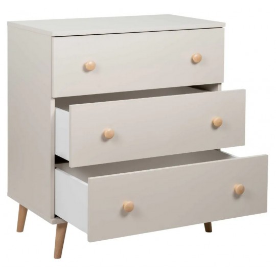 Komoda wykonana z wysokiej jakości płyty meblowej, z dbałością o detale, stanowi stabilną i trwałą konstrukcję, która będzie służyć przez lata! W połączeniu z gałkami i nogami z drewna bukowego, komoda wyróżnia się eleganckim wyglądem, pasującym do każdego wnętrza.