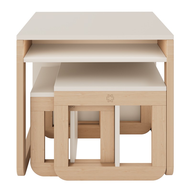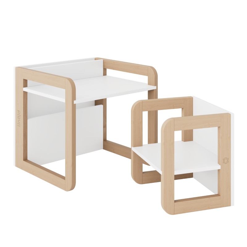 Møb 9w1 to zestaw mebli, który rośnie razem z dzieckiem. 3 modułowe elementy pozwalają stworzyć aż 9 funkcji – od krzesełka i stolika, przez taboret i biurko, po kanapę z regałem. Wykonany z litego drewna bukowego i płyty MDF, malowany ekologicznymi farbami, jest trwały, bezpieczny i ponadczasowy. To mebel, który spełnia wszystkie potrzeby dziecka do 6. roku życia i pięknie wpisuje się w codzienność w duchu Hygge i Lagom.