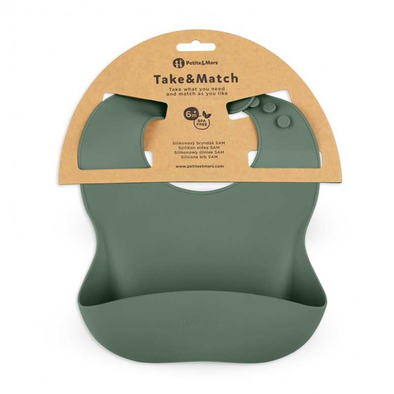 Silikonowy śliniak SAM z kieszonką jest niezbędnym elementem podczas rozszerzania diety dziecka. Daje wygodę i pewność podczas karmienia, jednocześnie pomagając utrzymać czystość podczas posiłków. To rozwiązanie ułatwiające życie rodzicom i wprowadzające komfort podczas karmienia najmłodszych.Śliniaczek został wykonany z silikonu spożywczego bez BPA. Przeznaczony jest dla małych dzieci od 6 miesiąca życia, którym wprowadza się rozszerzoną dietę oraz takich które z powodzeniem uczą się już samodzielnego jedzenia. Posiada regulowane zapięcie, które pozwala na dopasowanie go do rozmiaru szyi dziecka. Oznacza to, że śliniaczek może towarzyszyć dziecku przez dłuższy czas. Ergonomiczny kształt i miękki materiał sprawiają, że śliniaczek jest wygodny do noszenia i nie krępuje ruchów dziecka podczas jedzenia. Można go także zrolować i w związku z tym nie zajmuje dużo miejsca w torbie, gdy wybierzemy się na spacer bądź w podróż. Do śliniaczka można dobrać inny produkt z serii TAKE&MATCH w tej samej lub współgrającej gamie kolorystycznej.