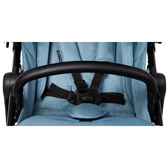Głęboki siedzisko Muuvo Roox zostało wyposażone w 5-punktową uprząż z miękkimi otulinami, dzięki temu podróż będzie nie tylko bezpieczna, ale i komfortowa. Otwierany pałąk z czarnej skóry ekologicznej to kolejny element podnoszący jakość podróży w siedzisku Roox.