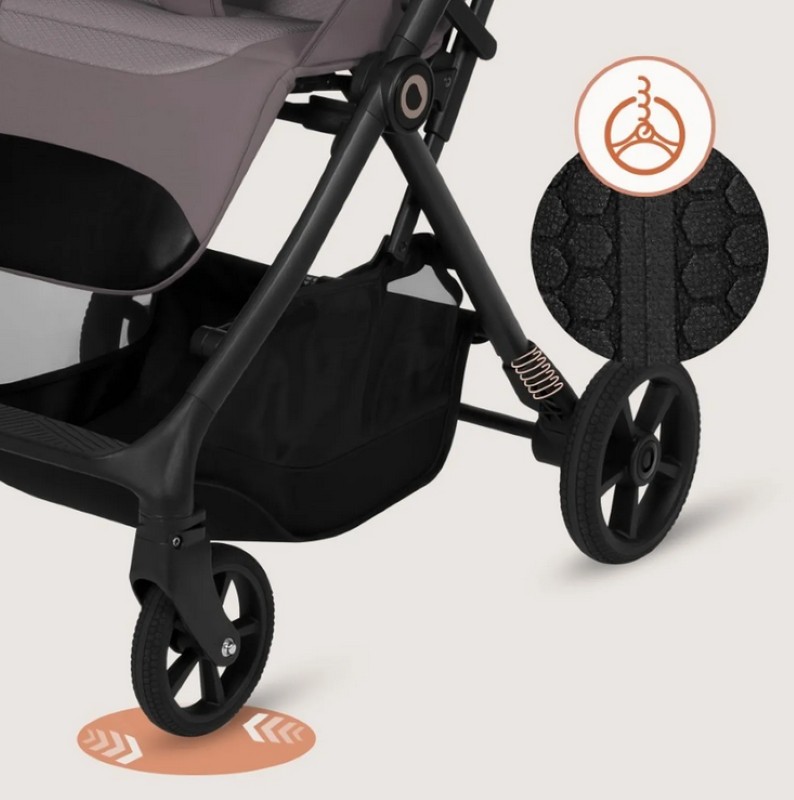 Sercem wózka spacerowego Lionelo Tansi jest system GravelTech – innowacyjne koła łączące lekkość, sprężystość i ponadprzeciętną trwałość. Skutecznie pochłaniają wstrząsy i gwarantują płynność jazdy niezależnie od nawierzchni. W połączeniu z przestronnym siedziskiem (aż 92 cm po rozłożeniu) oraz automatycznym składaniem do lekkiej, kompaktowej formy (auto-folding) tworzą wózek gotowy na najróżniejsze wyzwania.