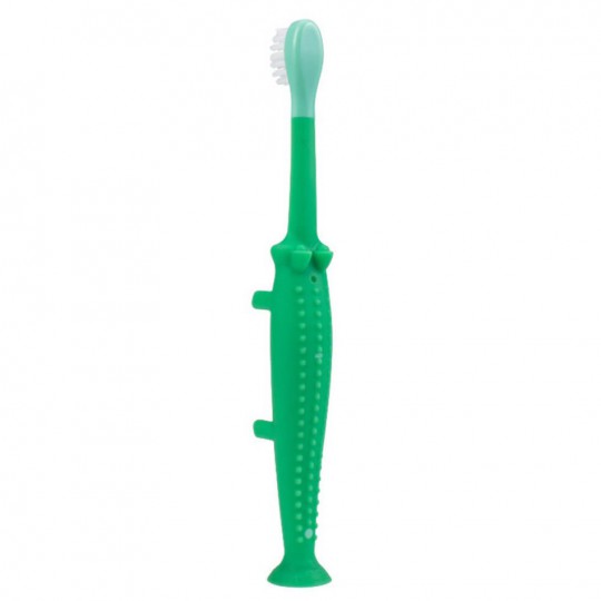 Szczoteczka do zębów w kształcie krokodyla zachęci dzieci do szczotkowania a tym samym utrwali nawyk dbania o higienę jamy ustnej. Włosie szczoteczki jest miękkie i elastyczne - nie podrażnia delikatnych dziąseł dziecka. Główka szczoteczki została zaprojektowana tak, aby idealnie dopasować się do małej,dziecięcej buzi i dotrzeć w niej do każdego, trudnego do wyczyszczenia miejsca. Uchwyt szczoteczki jest gumowy, co zapewni dobry chwyt podczas mycia zębów. Podstawa szczoteczki wyposażona została w przyssawkę - po skończonym szczotkowaniu wystarczy postawić szczoteczkę w pozycji pionowej np. na umywalce.