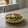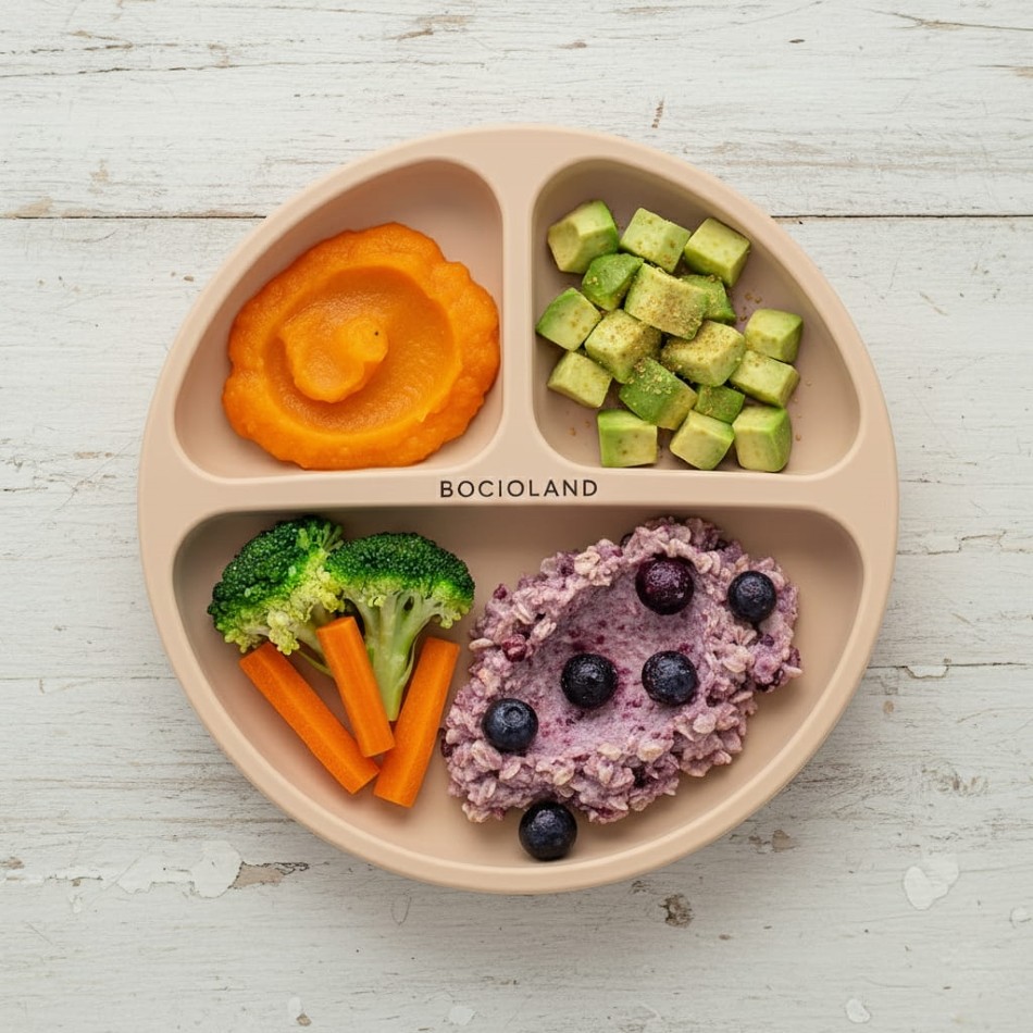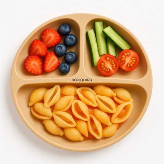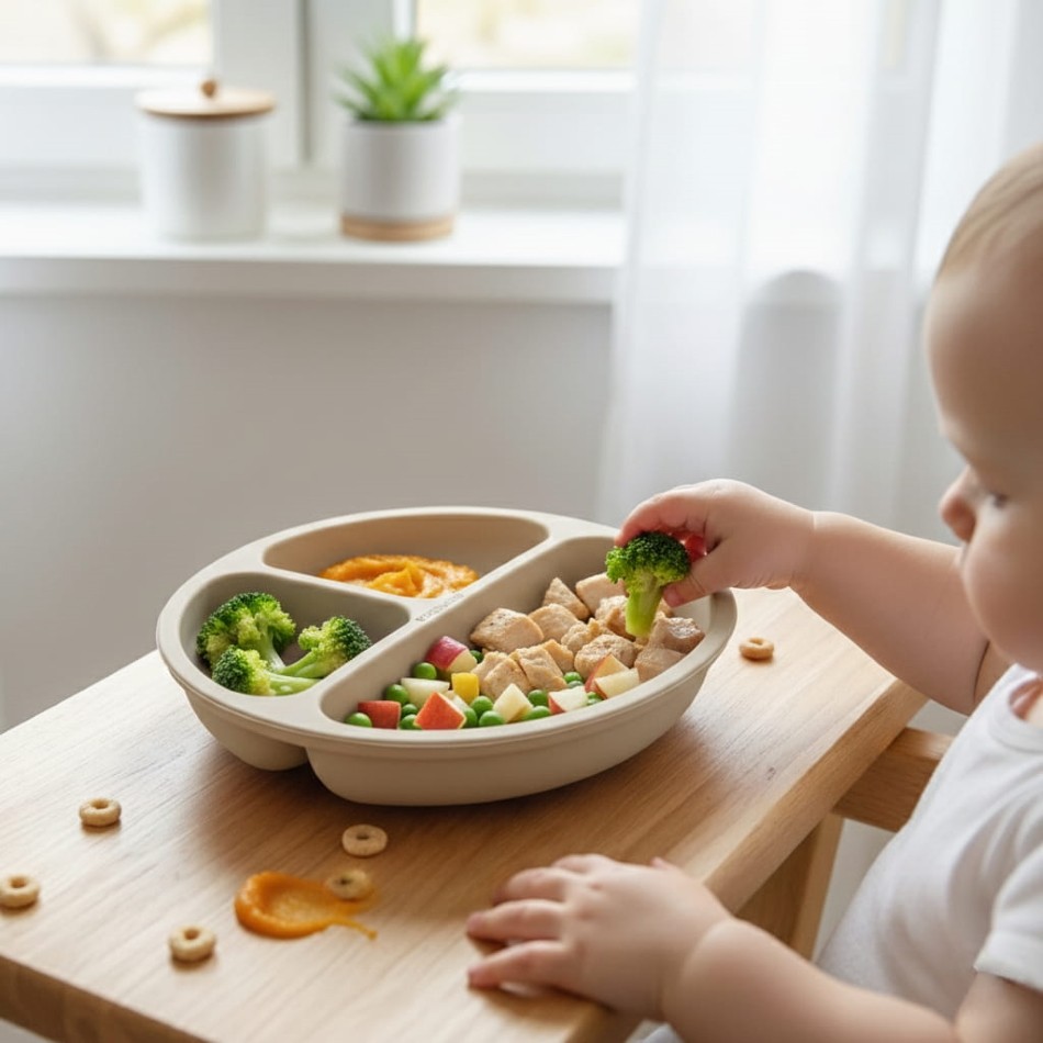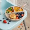 Pierwsze samodzielne posiłki stają się prostsze dzięki talerzykowi z przyssawkami – mniej bałaganu, więcej radości. Talerzyk ma trzy przegródki – jedną większą i dwie mniejsze. Pozwalają podać różne składniki jednocześnie, bez mieszania smaków.