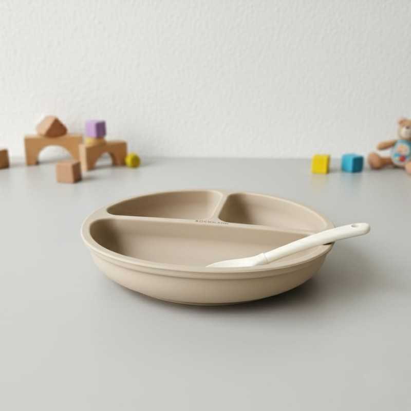 Bocioland Talerzyk silikonowy z podziałką i przyssawkami Beżowy