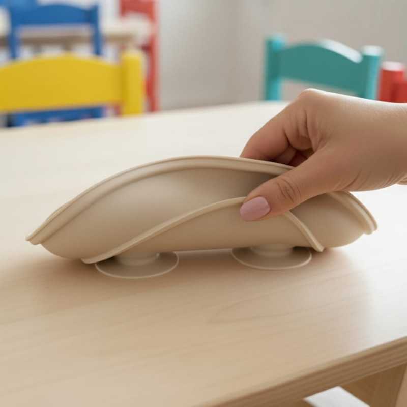 - Stabilność dzięki 4 przyssawkom - Cztery przyssawki zapobiegają przesuwaniu i spadaniu talerzyka, nawet gdy dziecko energicznie je.