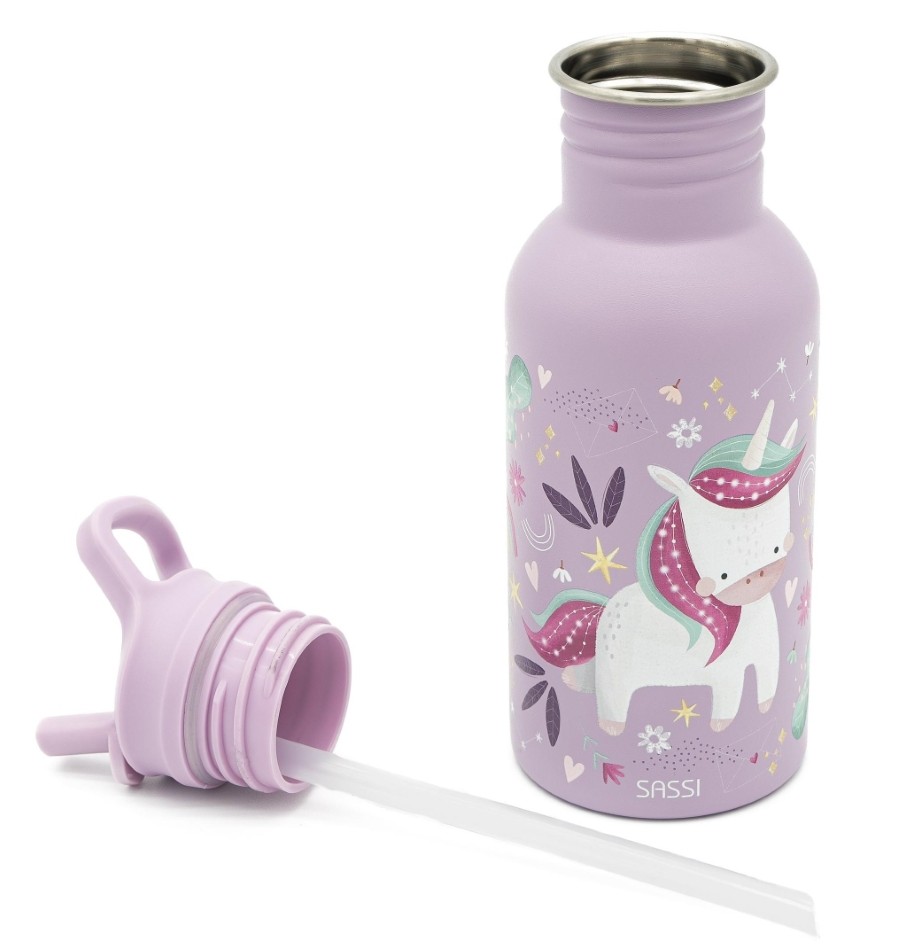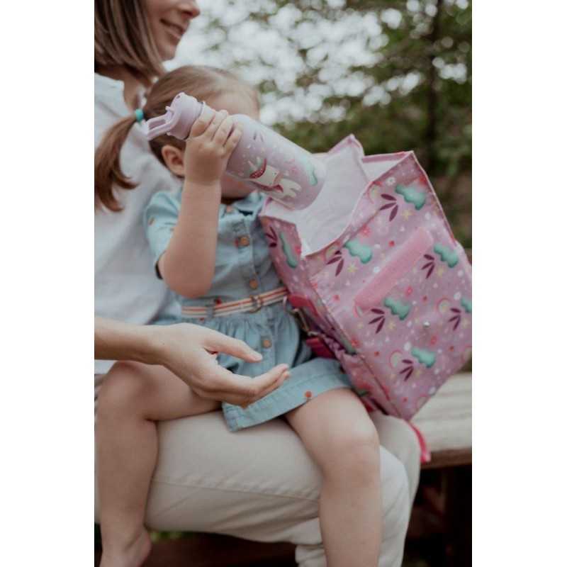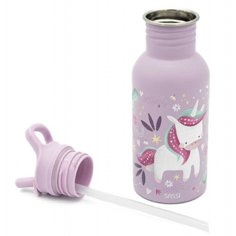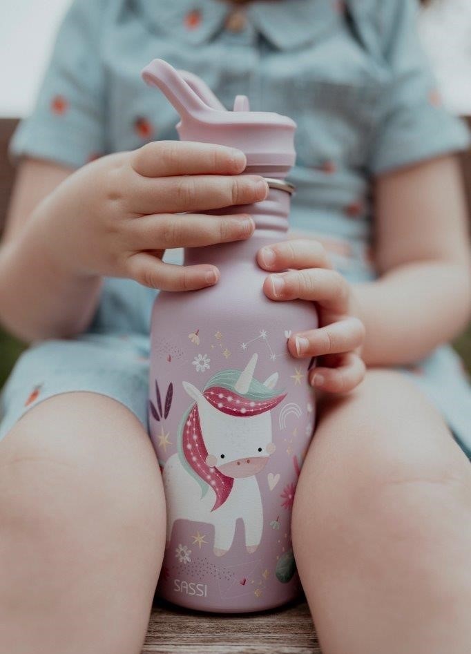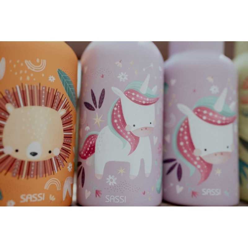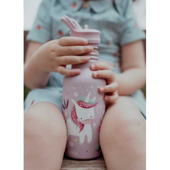 Butelka na wodę włoskiej marki SASSI ze stali nierdzewnej o pojemności 500 ml to idealny kompan codziennych przygód małych odkrywców. Wykonana z najwyższej jakości stali nierdzewnej, zapewnia trwałość i bezpieczeństwo podczas użytkowania. Lekka i poręczna, wyposażona w wygodną zakrętkę z pętelką do przenoszenia oraz wyjmowaną słomkę, która ułatwia samodzielne picie dzieciom. Hermetyczne zamknięcie zapobiega rozlaniu, dzięki czemu butelka sprawdzi się doskonale w przedszkolu, szkole i na spacerach. Butelka ozdobiona jest motywem odważnego lwa Chompy, który uczyni każdą przerwę na picie przyjemniejszą.