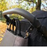 Praktyczne uchwyty do mocowania torby dla mam do wózka. Końcówkę z karabińczykiem łatwo przeciągniesz przez oczko wokół rękojeści wózka. W zestawie 2 sztuki.