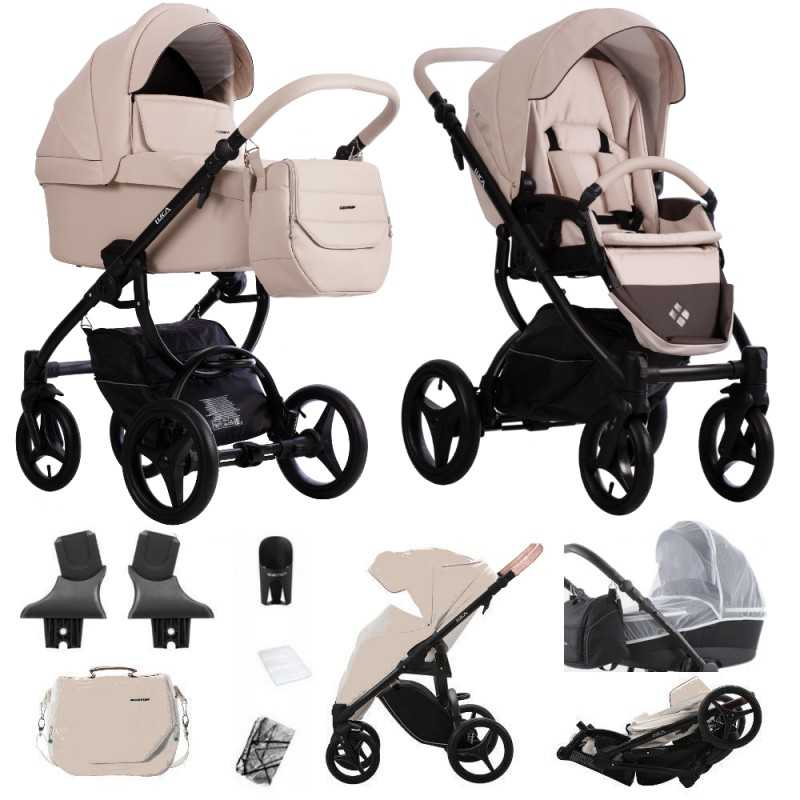 Wózek Luca Pro oparty jest na trwałym i lekkim stelażu, który zapewnia stabilność i bezpieczeństwo. Systemy takie jak SAS i DMS absorbują wstrząsy oraz chronią przed blokowaniem się kół. Stelaż może być złożony do kompaktowych rozmiarów (także z wpiętą spacerówką). Na dole wózka umieszczono pojemny koszyk, który idealnie sprawdza się np. do przewożenia niewielkich zakupów czy też akcesoriów potrzebnych podczas spacerów z dzieckiem. Koszyk może także pełnić funkcje torby - da się go wygodnie zawiesić na ramieniu. Zarówno w wersji PRO, jak i standardowej, stelaż występuje w kolorze czarnym z gustowną brązową rączką obszytą eko-skórą.