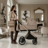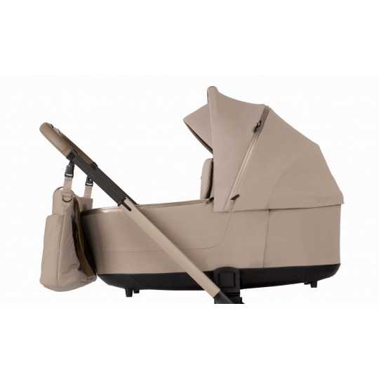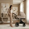 Po okresie gondoli wózek można łatwo przekształcić w wersję spacerową. Siedzisko spacerowe można montować przodem lub tyłem do kierunku jazdy, co daje rodzicom możliwość utrzymywania kontaktu wzrokowego z dzieckiem lub pozwala maluchowi odkrywać świat. Oparcie jest regulowane – od pozycji siedzącej aż do leżącej – dzięki czemu dziecko może wygodnie odpocząć podczas spaceru. Regulowany podnóżek oraz pięciopunktowe pasy bezpieczeństwa zapewniają stabilność i wygodę.