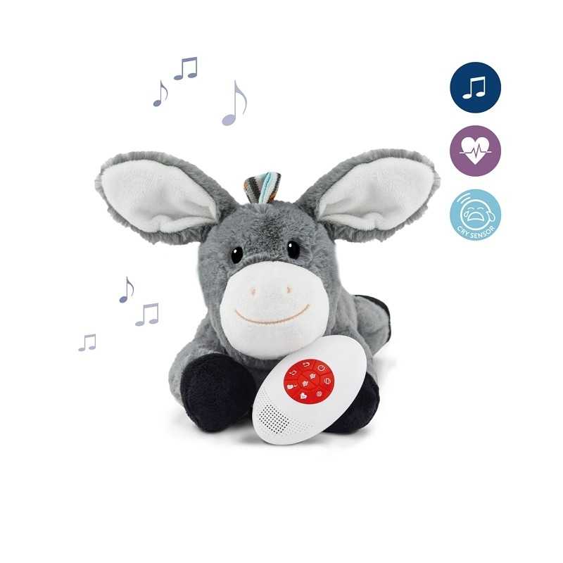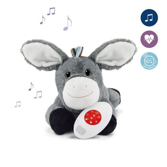 Przytulanka usypianka ZAZU wyposażona jest w Baby Sensor, który emituje kilka kojących dźwięków: szum, bicie serca i 4 kołysanki. Uaktywnia się na płacz lub dotyk. Wspaniała pomoc dla rodzi-ców i opiekunów. Posiada 6 różnych dźwięków, szum, bicie serca, 4 kołysanki – Włącza się na dźwięk z otoczenia (np. na płacz dziecka) lub poruszenie zabawką. Wyłącza się automatycznie po 10 minutach. Poziom głośności jest regulowany