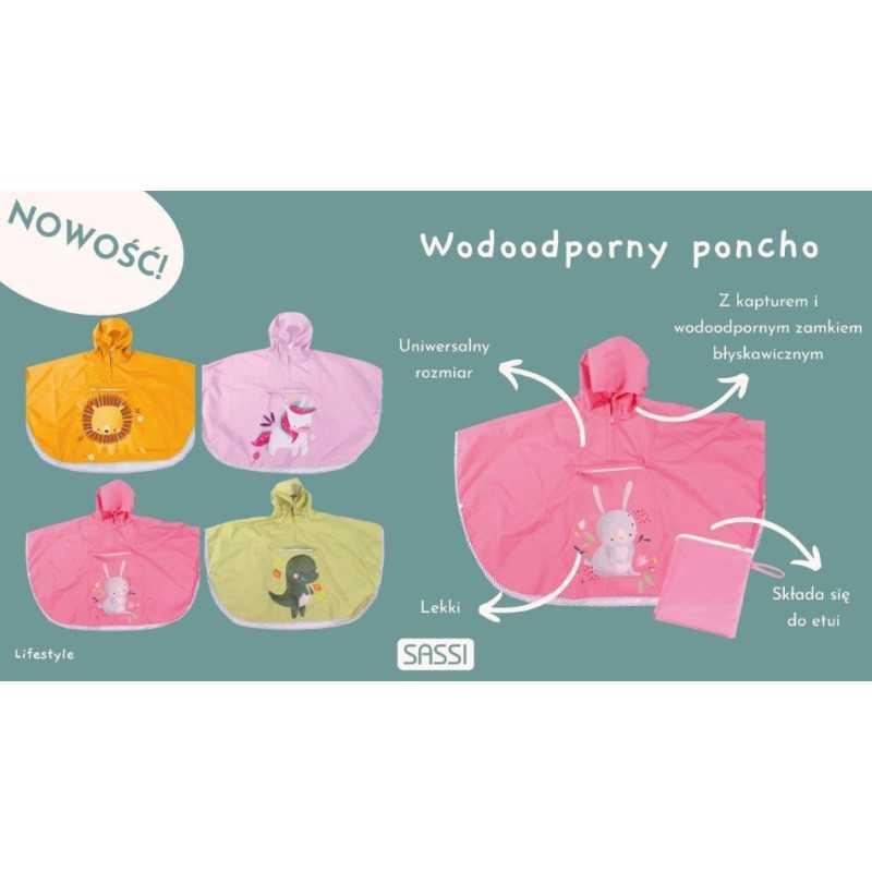 To urocze ponczo to doskonałe połączenie włoskiego stylu, zabawy i praktyczności, idealny towarzysz dziecka w najbardziej deszczowe dni. Stylowe i funkcjonalne ponczo przeciwdeszczowe włoskiej marki SASSI zadba o komfort i ochronę dziecka nawet w najbardziej deszczowe dni. Zaprojektowane specjalnie dla dzieci w wieku od 3 do 6 lat, poncho łączy w sobie wysoką jakość wykonania, lekkość oraz atrakcyjny design, który pokochają zarówno dzieci jak i rodzice. Wodoodporne poncho sprawdzi się idealnie na spacer, do przedszkola czy podczas rodzinnych wycieczek.
