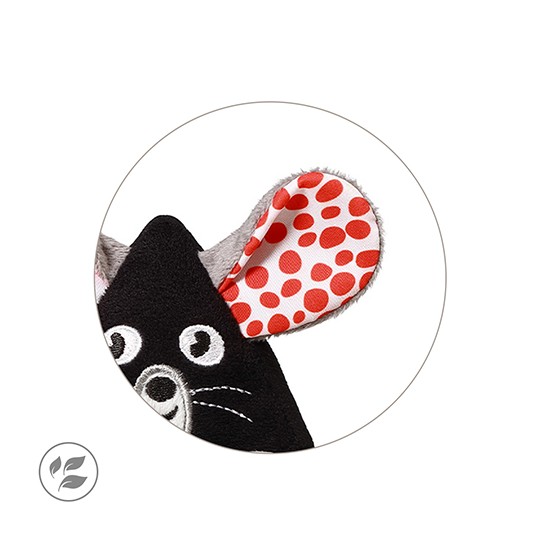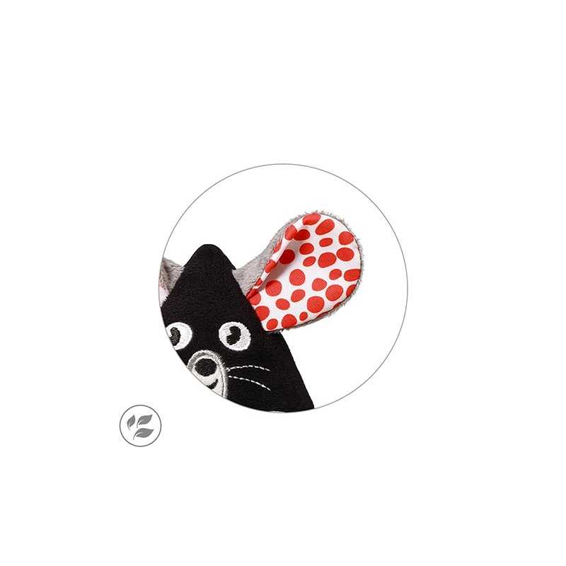 • SZELESZCZĄCE USZY- Wystarczy dotknąć uszu myszki, by usłyszeć intrygujący szelest. Delikatny dźwięk motywuje do eksploracji przez dotyk i ściskanie. Maluszek w subtelny sposób rozwija słuch i wrażliwość sensoryczną.