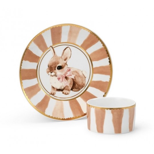 Ten uroczy porcelanowy zestaw ze złoconymi krawędziami i nadrukami zwierząt został wykonany z ekskluzywnego i wytrzymałego materiału, dzięki czemu mogą z niego korzystać małe dzieci. Talerz i miska są idealne zarówno do codziennego użytku, jak i na specjalne okazje. To wyjątkowy prezent klasy premium, który doskonale nadaje się na urodziny, uroczystości nadawania imienia lub chrzciny. Dodatkowo idealnie pasuje do zestawów sztućców ze stali nierdzewnej Elodie.